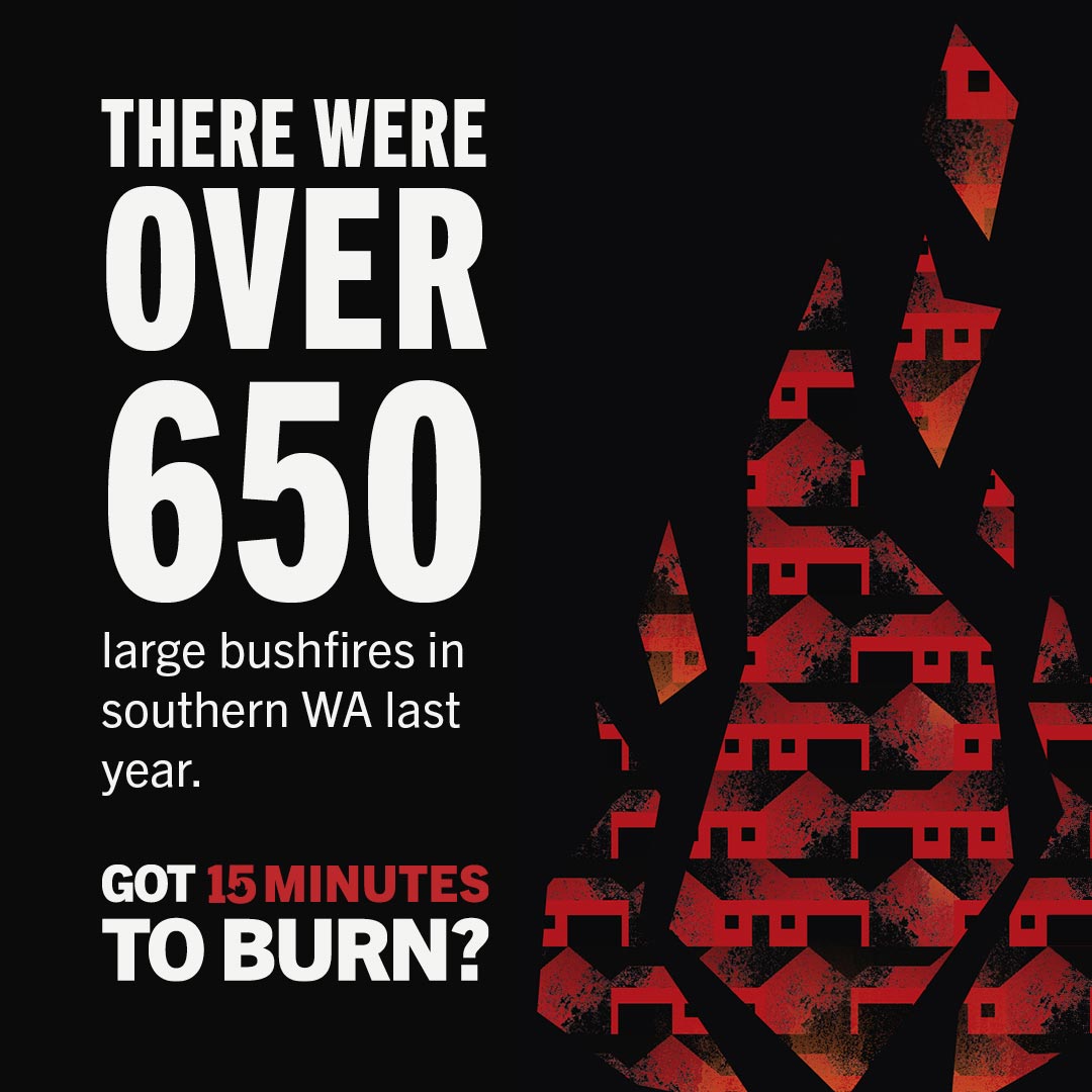 The 'Got 15 Minutes to Burn?' campaign encourages the community to make or update their emergency plan and ensure their property is prepared for bushfires.